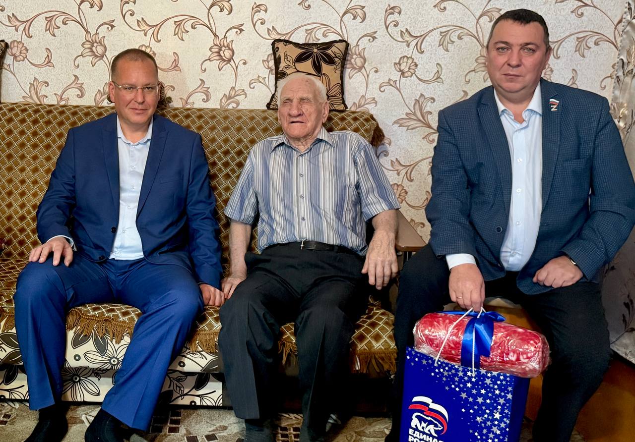 По доброй традиции глава городского округа Дмитрий Ажичаков и председатель городского Совета народных депутатов Вадим Рогалис навестили ветерана Великой Отечественной войны Василия Кирилловича Костюченко и поздравили его с наступающим Новым годом.