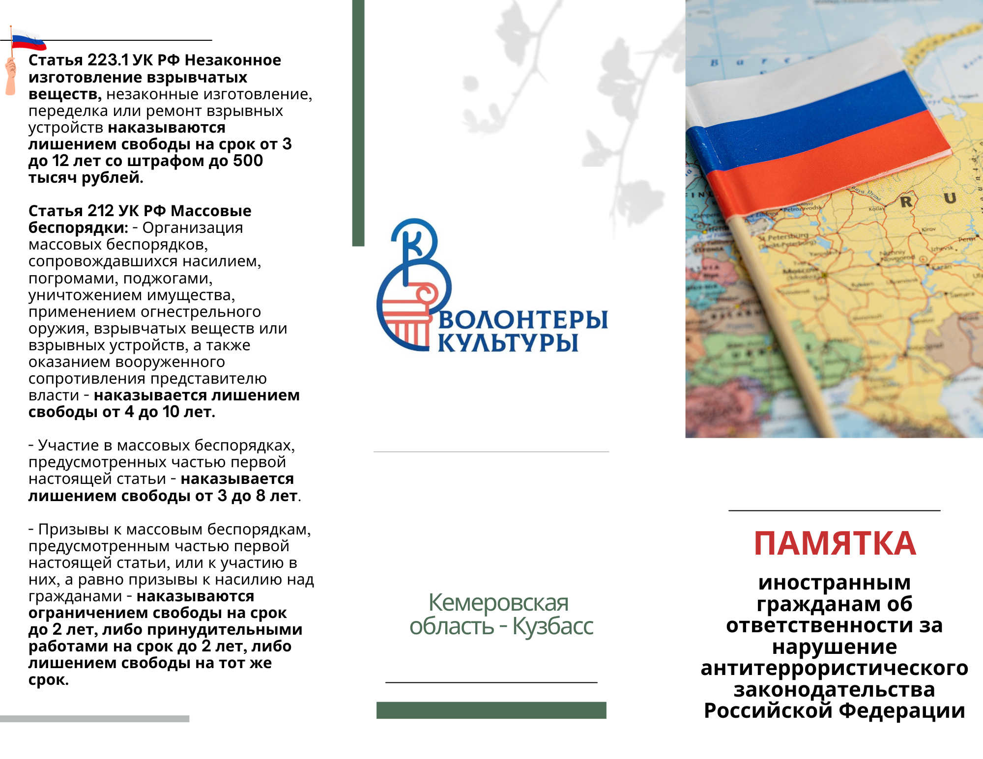 ПАМЯТКА ИНОСТРАННЫМ ГРАЖДАНАМ ОБ ОТВЕТСТВЕННОСТИ ЗА НАРУШЕНИЕ АНТИТЕРРОРИСТИЧЕСКОГО ЗАКОНОДАТЕЛЬСТВА РФ