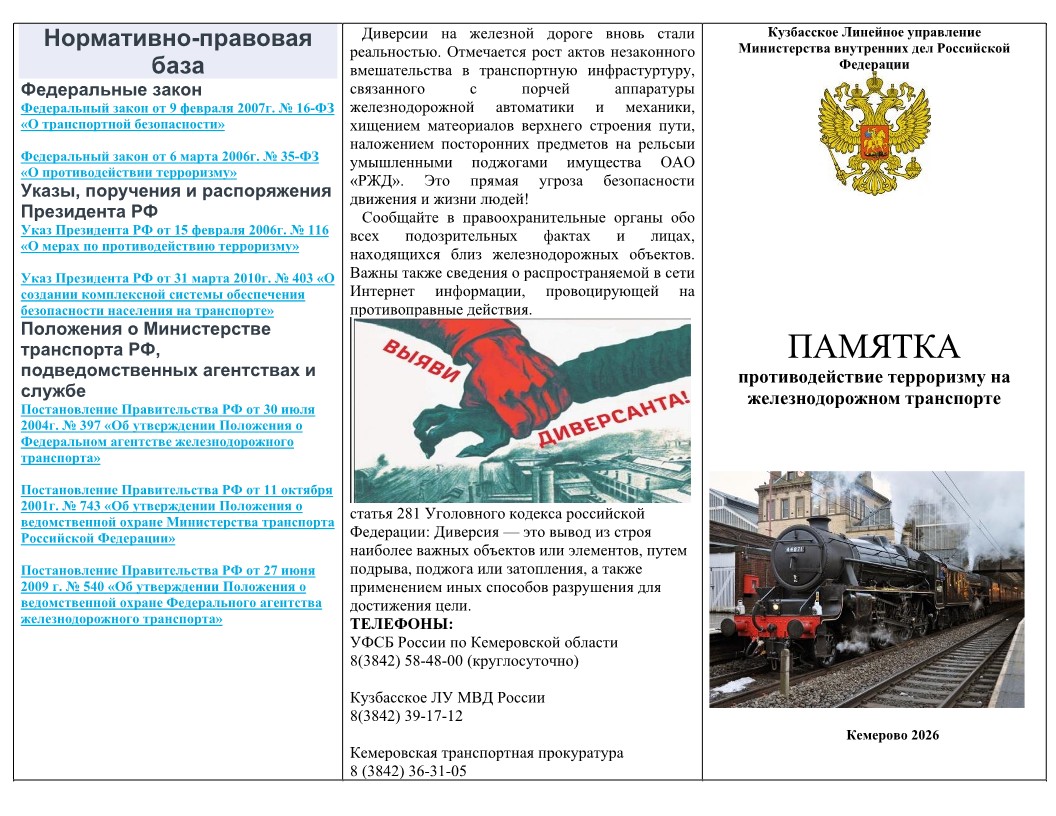 Памятка по противодействию терроризму на железнодорожном транспорте