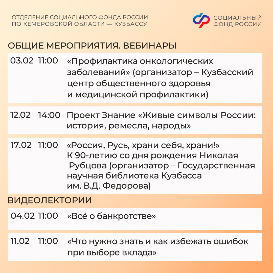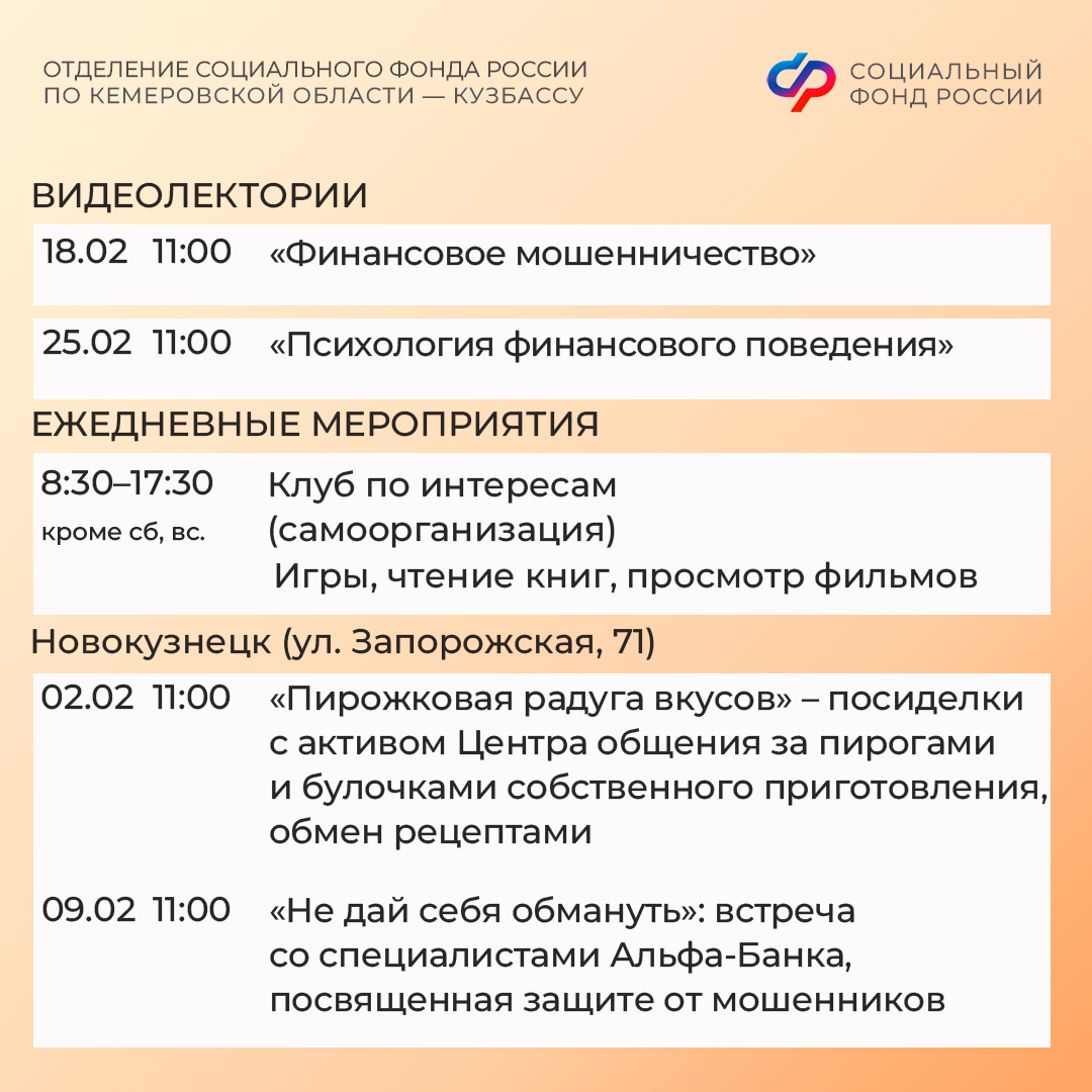 Афиша событий в кузбасских центрах общения старшего поколения в феврале