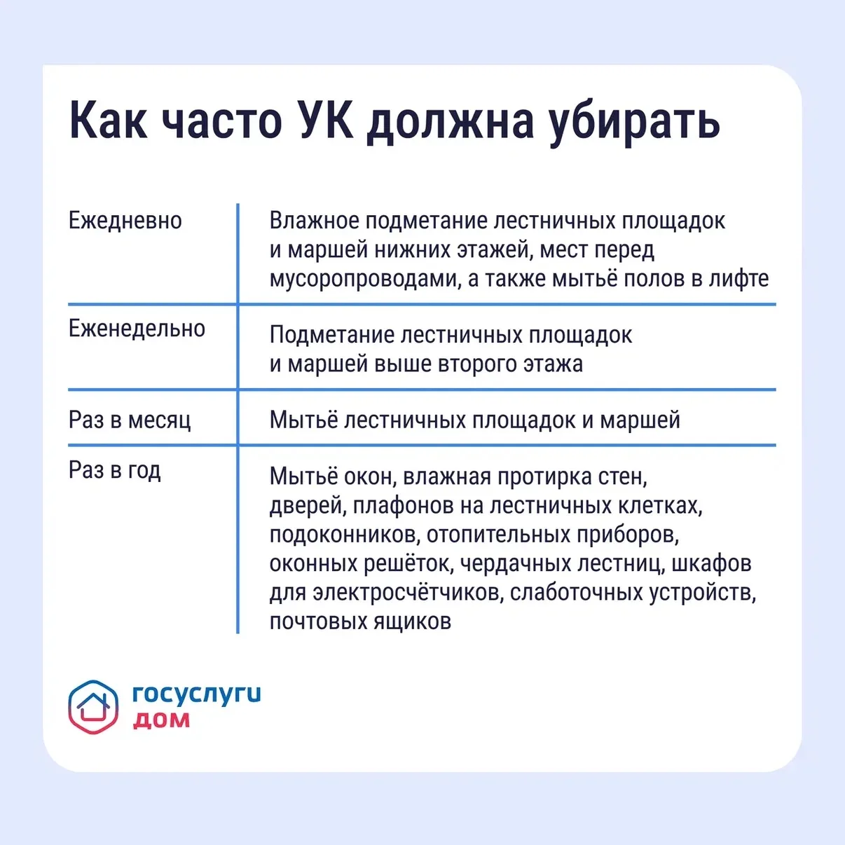 Как навести порядок в подъезде. Грязные полы, пыльные перила, забитый мусоропровод — это прямое нарушение прав жильцов. Поддерживать чистоту в местах общего пользования обязана управляющая организация (УО). Рассказываем, какие рекомендации по уборке существуют и как повлиять на УО через приложение «Госуслуги Дом». Скачать «Госуслуги Дом» и навести порядок в подъезде: