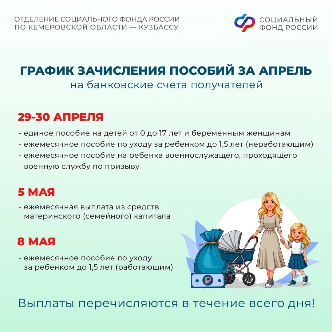 Отделение СФР по Кемеровской области – Кузбассу выплатит детские пособия за апрель досрочно в связи с майскими праздниками