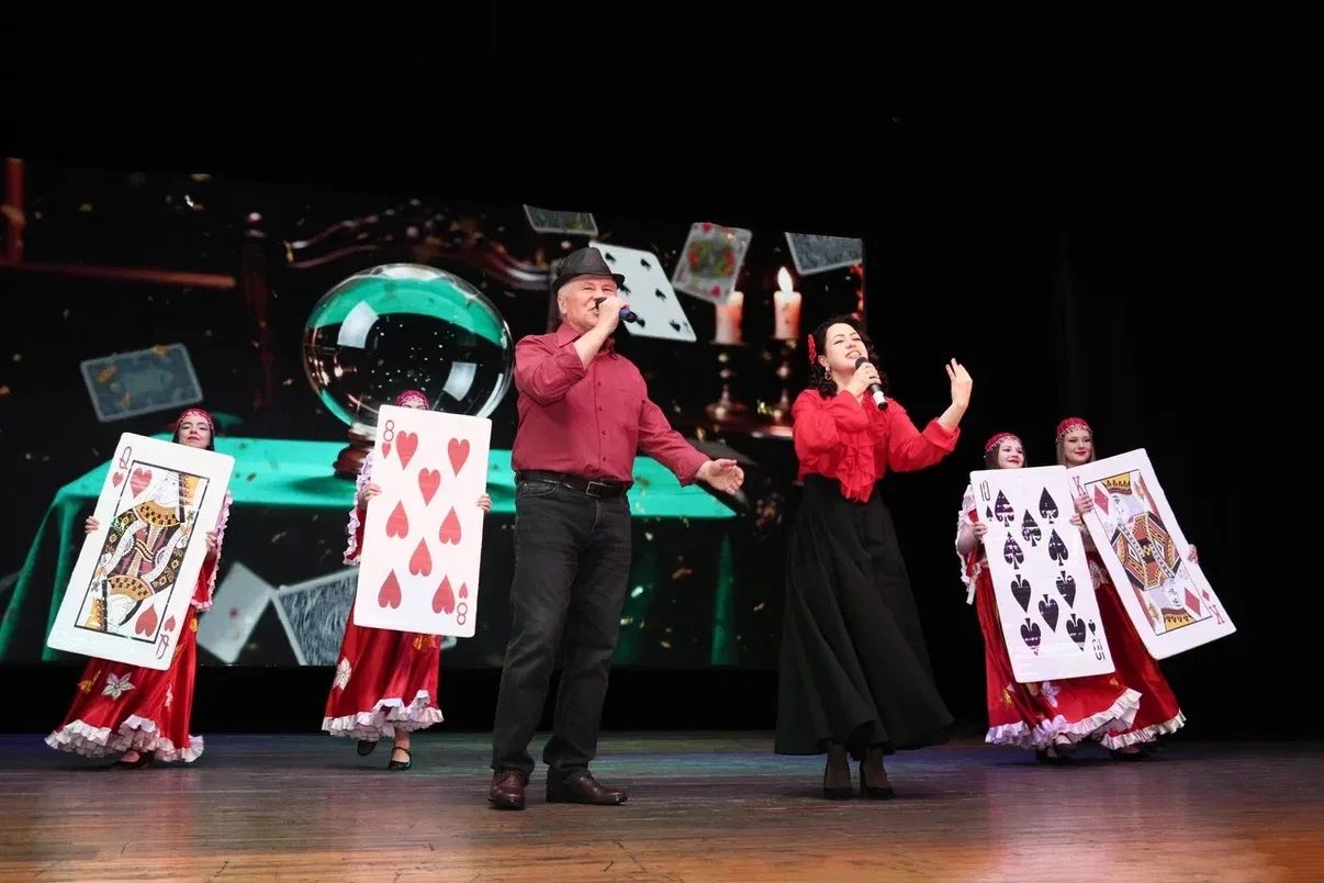 Творческие дуэты, в состав которых вошли молодые солисты и зрелые артисты, исполнили песни разных лет, от народных стилизованных композиций и золотых шлягеров до хитов современной поп-музыки.