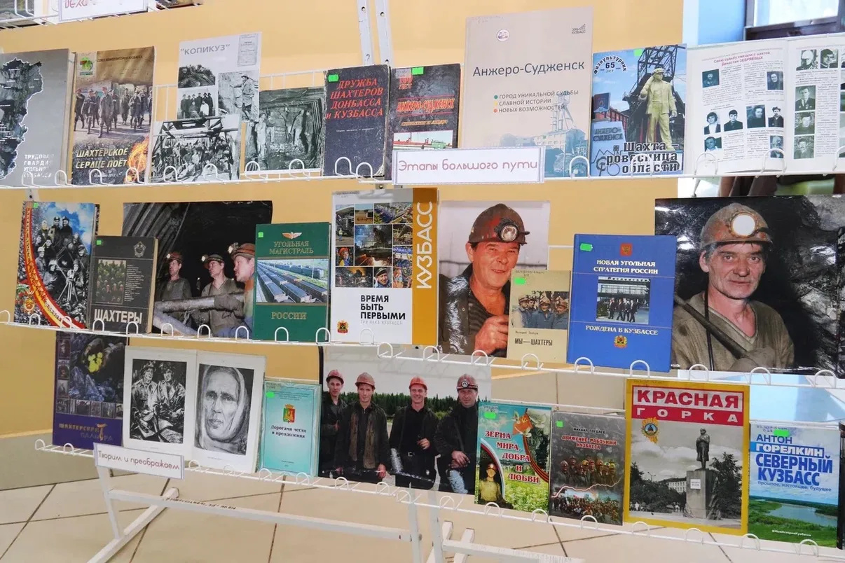 В фойе Дворца культуры сегодня работала выставка «Шахтёрская палитра», подготовленная сотрудниками Центральной городской библиотеки, где можно было ознакомиться с документальной и художественной литературой о Кузбассе и Анжеро-Судженске.