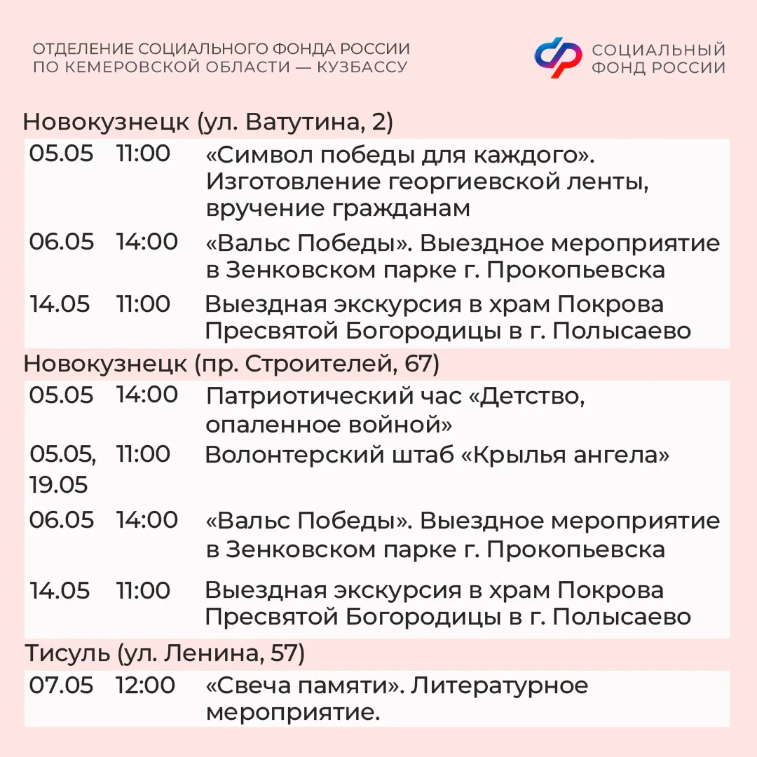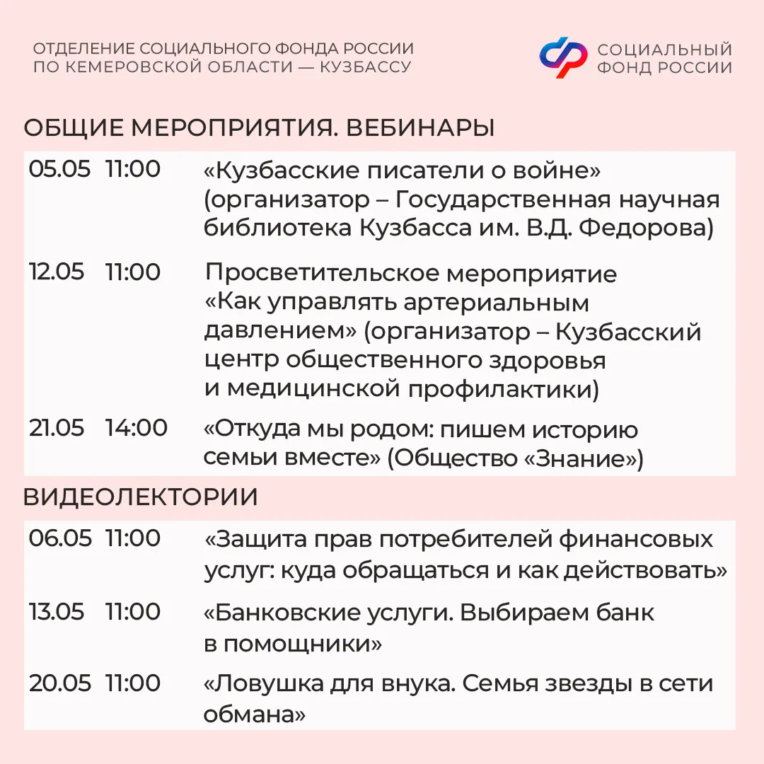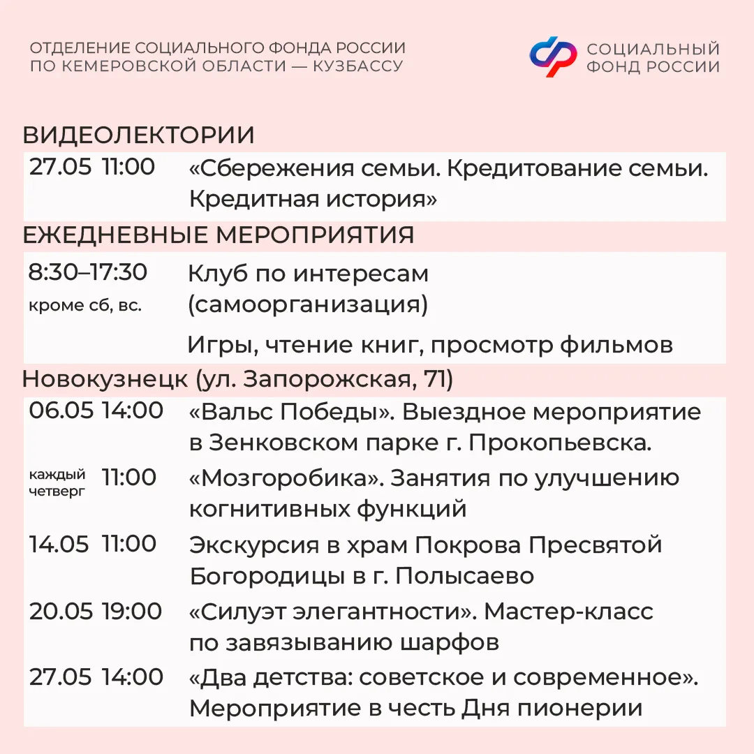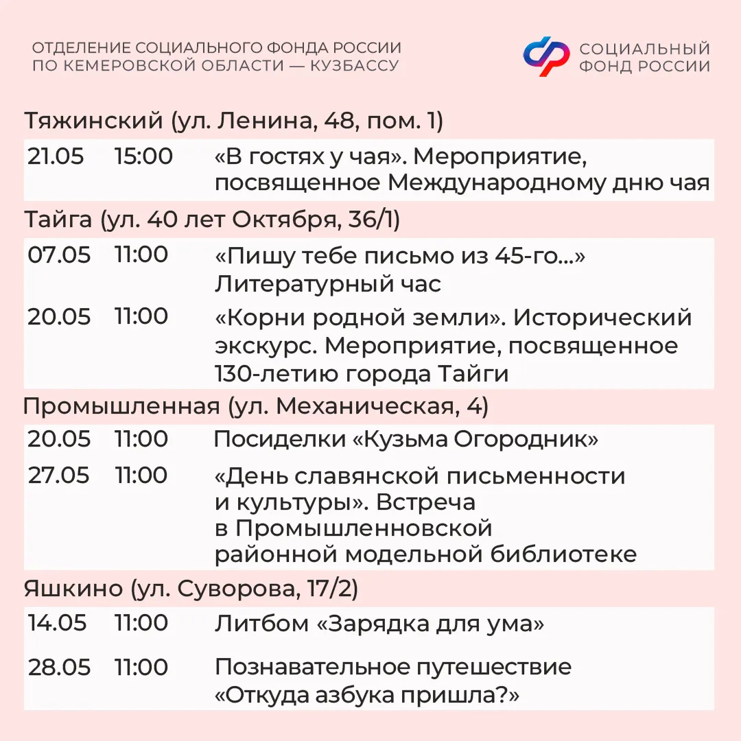 Славим Весну, славим Победу! Афиша центров общения старшего поколения Отделения СФР по Кузбассу на май