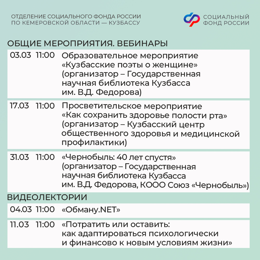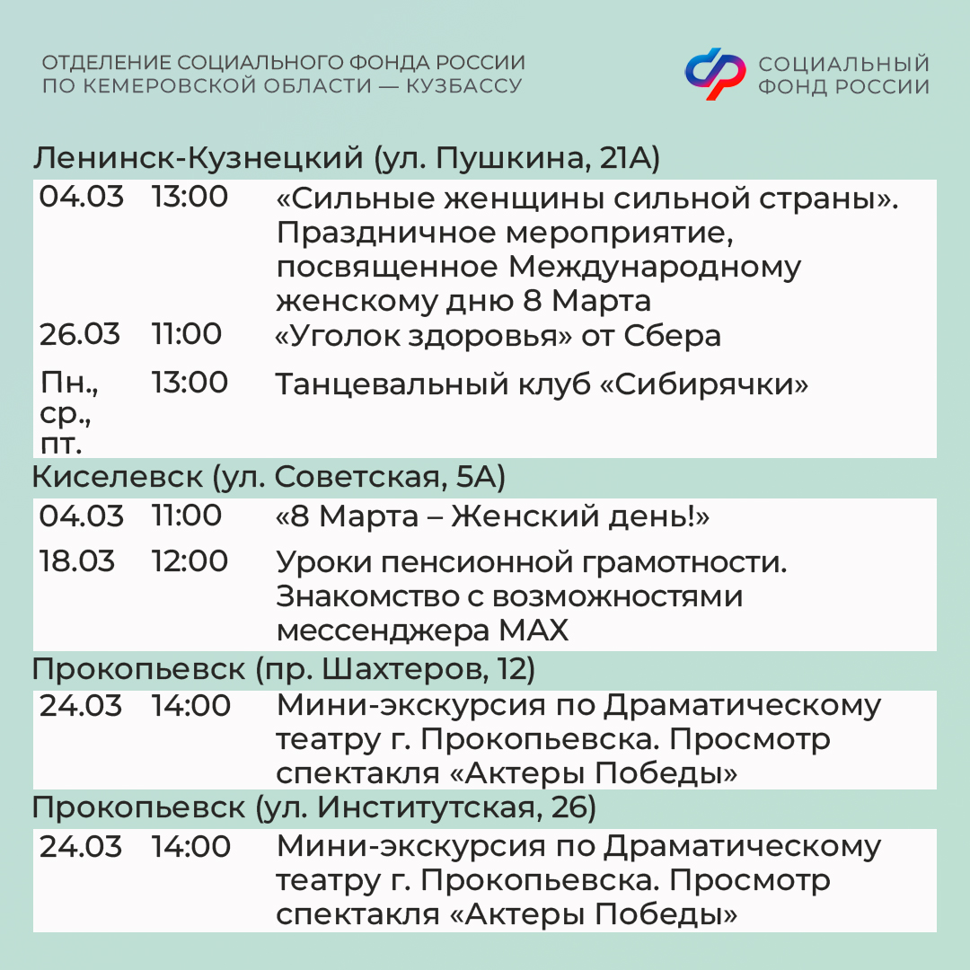 Центры общения старшего поколения Отделения СФР по Кузбассу ждут гостей в марте!