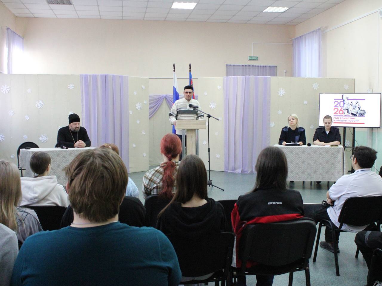 В Центре национальной культуры состоялся круглый стол, посвященный Всемирной неделе гармоничных межконфессиональных отношений. В мероприятии приняли участие студенты Анжеро-Судженского филиала кузбасского медицинского колледжа и представители национальных диаспор города. Отец Александр, протоиерей Храма Собора Сибирских святых, и Рамиль Рахимов, имам Анжеро-Судженского городского округа, поделились ценными знаниями о религиях, исповедуемых жителями Анжеро-Судженска, и о важности межконфессионального взаимодействия. Врио начальника отдела по вопросам миграции ОМВД России по Анжеро-Судженскому городскому округу, лейтенант полиции Ксения Демина и инспектор по делам несовершеннолетних Отдела МВД России по Анжеро-Судженскому городскому округу, майор полиции Альбина Кирсанова рассказали о рисках экстремизма и терроризма в молодежной среде, подчеркнув необходимость бдительности, особенно в сети Интернет, и напомнили об ответственности за противоправные действия. В завершении мероприятия представители конфессий ответили на вопросы, интересующие студентов.