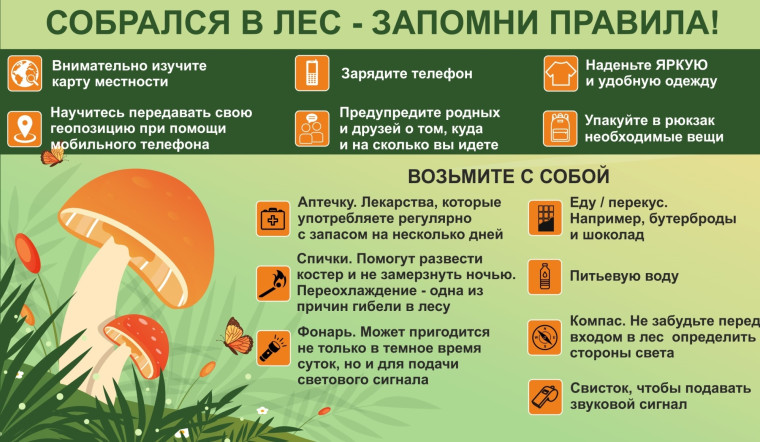 Прежде чем отправиться в лес за грибами и ягодами, необходимо позаботиться о своей безопасности!